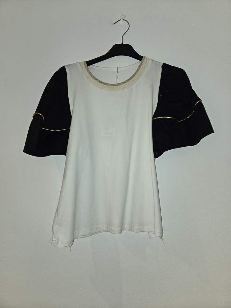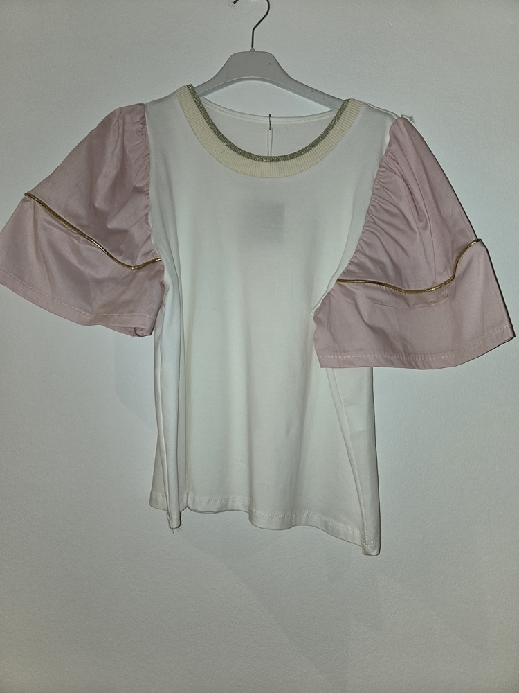 CAMISETA CON MANGA ACAMPANADA, CON DETALLE DE BORDE DORADO.