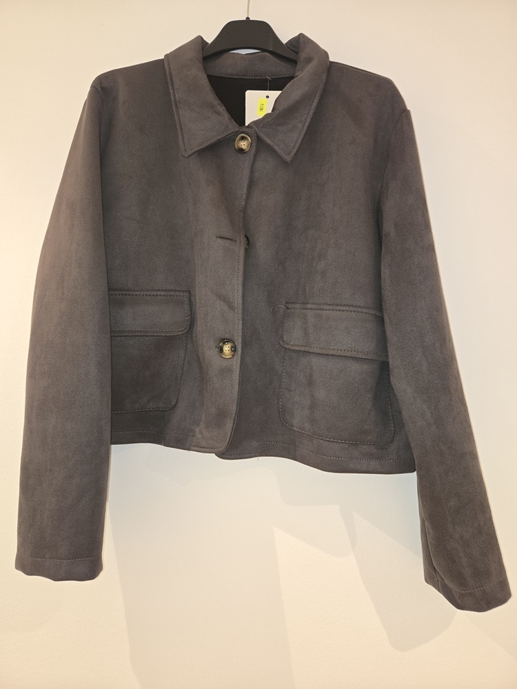 CHAQUETA DE ANTELINA CORTA, CON BOLSILLOS.