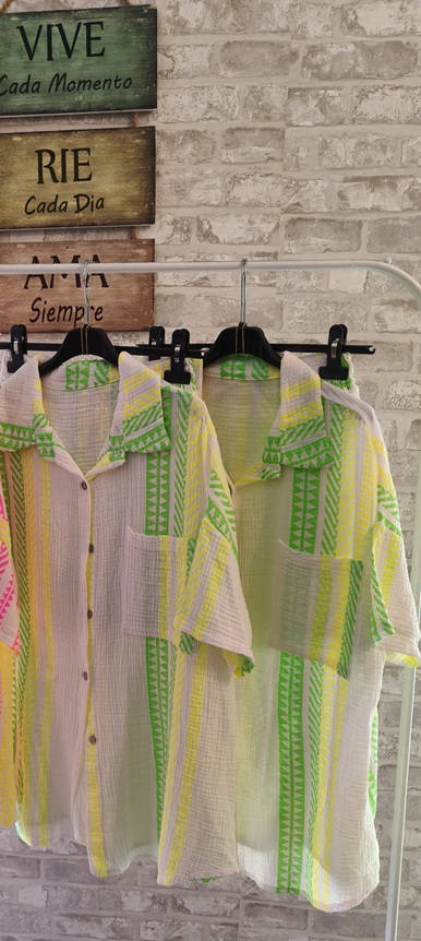 Conjunto de dos piezas confeccionado en bambulá ligera y fresca, ideal para los días de calor. Incluye blusa de corte suelto y pantalón corto, ambos en tonos flúor que realzan tu estilo y energía. Disponible hasta talla 44, con corte amplio que se adapta cómodamente a diferentes tipos de cuerpo.